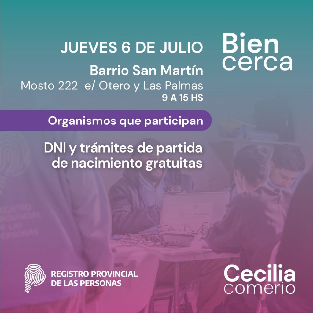 En el marco del Programa Bien Cerca, distintos organismos provinciales y nacionales atenderán consultas y realizarán diversos trámites de vecinos y vecinas del *Barrio Virgen del Rosario*, *Barrio San Martín* y *Campos Salles*._