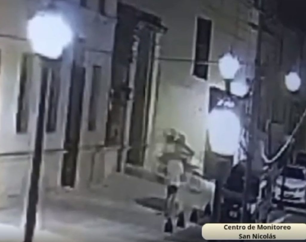 Se logra observar a través de las Cámaras de Monitoreo Municipal el momento en que toman la motocicleta marca Motomel CX250 color blanca y el recorrido que hacen con ella