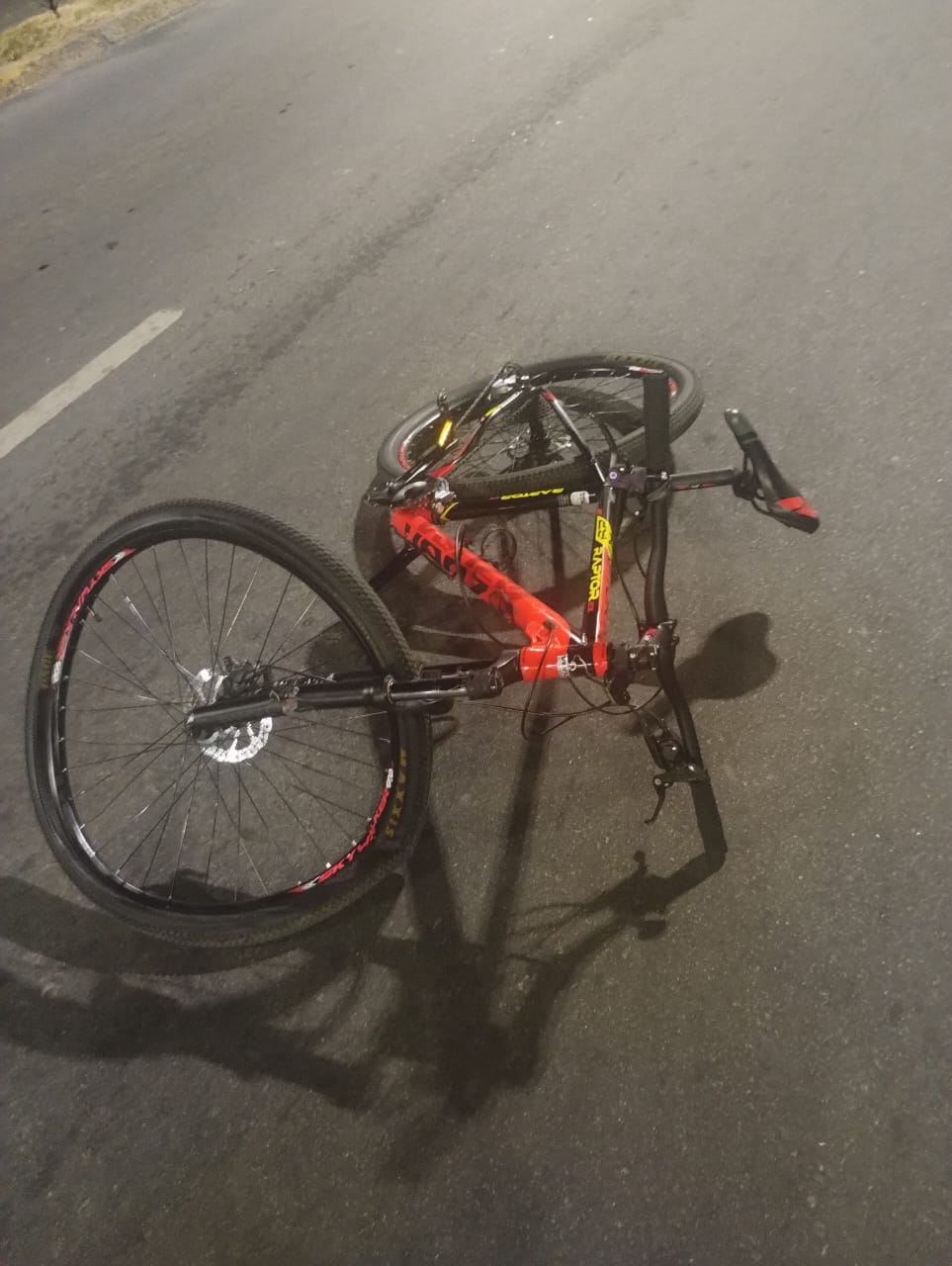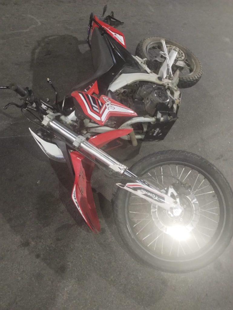 Una motocicleta marca Corven 250 TXR color roja y una bicicleta marca Venzo rodado 29, color negra protagonizaron un accidente de tránsito alrededor de las 21:00hs del viernes
