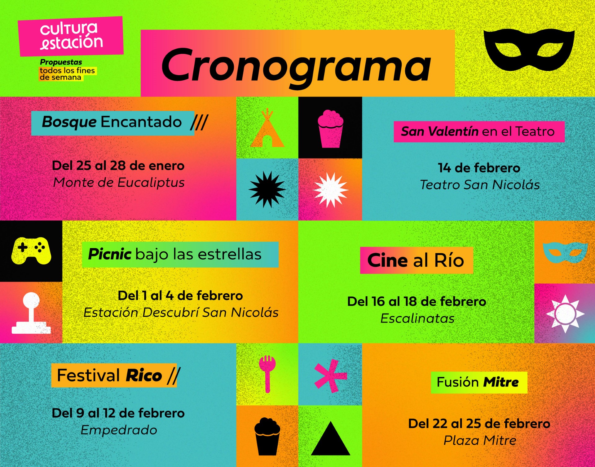El ciclo comenzará el 25 de enero y continuará durante cinco fines de semana consecutivos con actividades para compartir en familia y con amigos. El Monte de Eucaliptus, la Estación Descubrí, el Empedrado, el Teatro San Nicolás, las Escalinatas de la Costanera y la Plaza Mitre le darán un marco único a cada experiencia realzando la belleza de cada espacio.