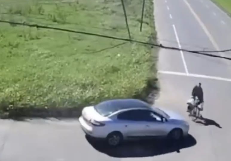 Se puede observar el momento del accidente cuando el auto conducido por una mujer de 32 años circulaba por la calle Tucumán e intenta girar hacia la Avenida y termina impactando sobre la bicicleta, la cual era guiada por un hombre de 29 años, quién sufrió lesiones de carácter leves.