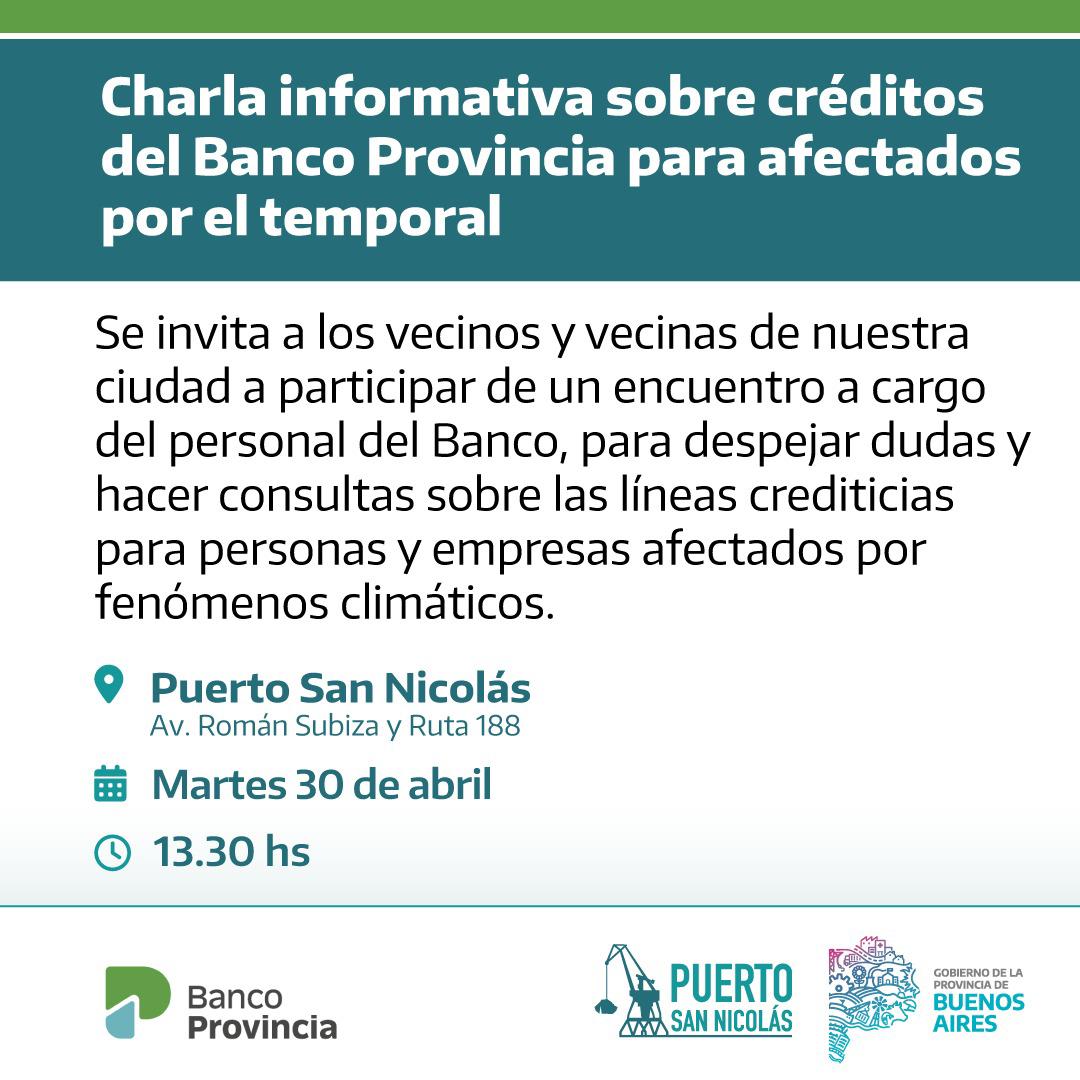 Por tal motivo, se convoca a los vecinos y vecinas de la ciudad a participar del encuentro que se realizará este martes a las 13.30 hs. en el edificio administrativo portuario ubicado en Av. Román Subiza y Ruta 188. La iniciativa de la banca pública bonaerense busca contribuir a la reconstrucción y recuperación de viviendas, comercios e infraestructura dañada, brindando soluciones financieras a aquellos vecinos y vecinas de la ciudad que requieran apoyo.