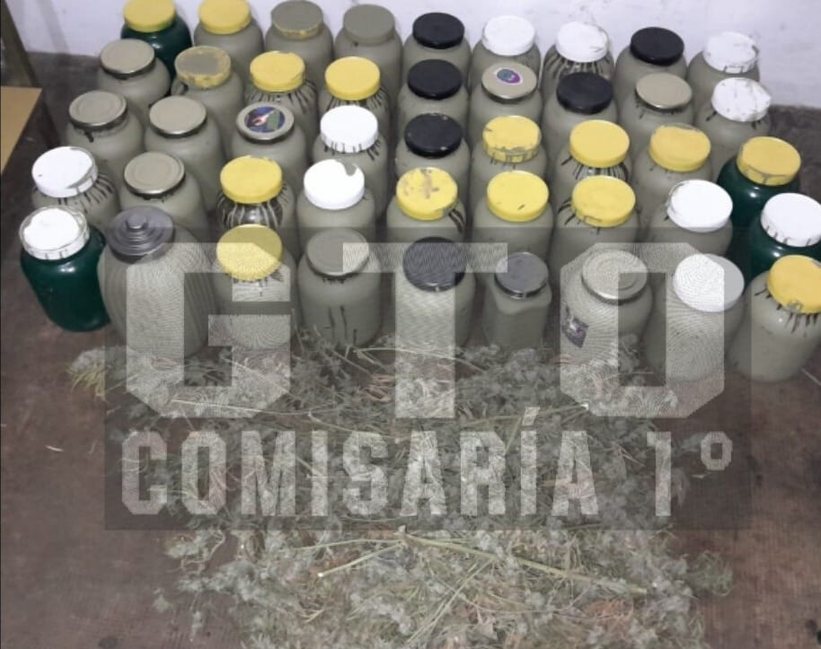 Además secuestraron 45 frascos conteniendo marihuana y una bolsa de nylon tambien conteniendo mismo material estupefaciente con un guarismo total de 12 KG.