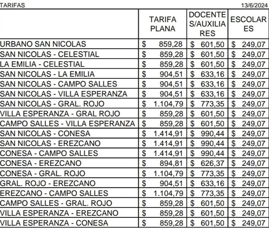 A partir de este jueves, comienza a regir el nuevo cuadro tarifario del transporte urbano de pasajeros en San Nicolás. Así, el boleto plano pasará a costar 859,28 pesos, convirtiéndose en uno de los más caros de toda la Argentina.