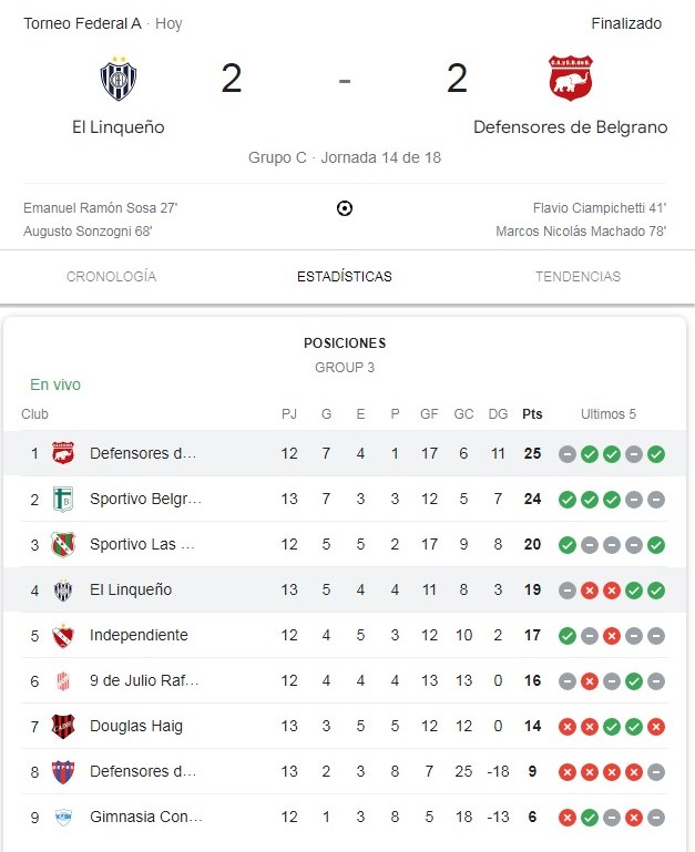 Defensores de Belgrano de Villa Ramallo igualó este lunes 2 a 2 como visitante con El Linqueño, y se mantiene como líder de la Zona 3 del Torneo Federal A de fútbol. Transmitió FM 88.7 Radio City San Nicolás, siguiendo la campaña de Defensores en el Federal A.