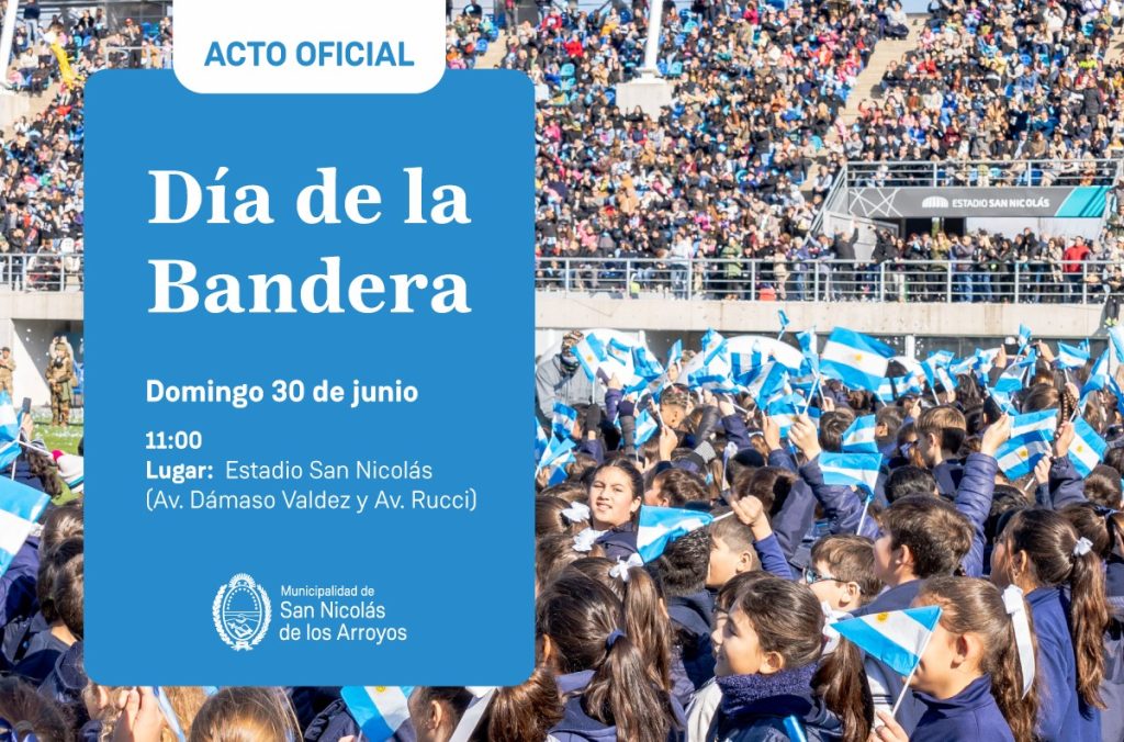 El domingo 30 de junio a las 11:00 en el Estadio San Nicolás se realizará el acto oficial por el Día de la Bandera, en conmemoración de un nuevo aniversario del paso a la inmortalidad del Gral. Manuel Belgrano.
