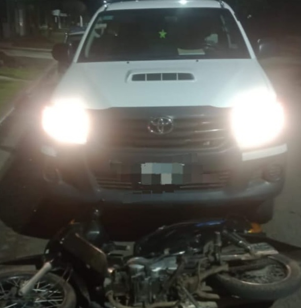 Por razones que aun se tratan de establecer, personal policial perteneciente a la Comisaría Tercera se dirigió a Zaracondegui y Chacabuco en donde sucedió un siniestro vial entre una motocicleta Honda Biz 110cc de color negra y una camioneta marca Toyota, modelo Hilux de color blanca.