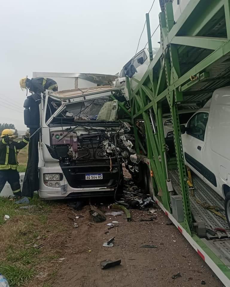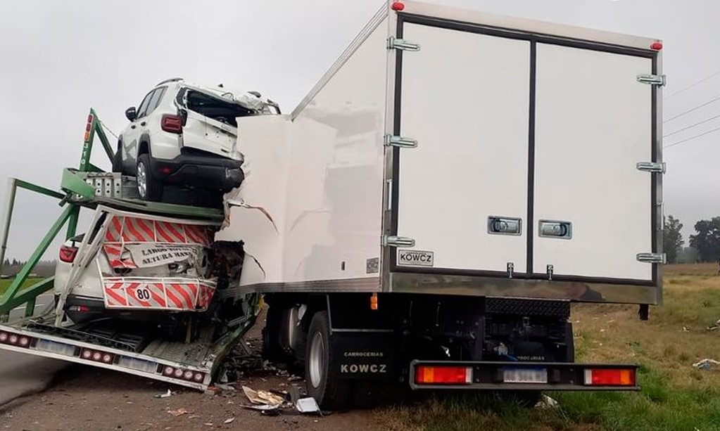 La información recogida da cuenta que por razones que se tratan de establecer un camión de la marca Iveco impactó contra el tráiler de otro camión que transportaba automóviles y se encontraba estacionado sobre la banquina.