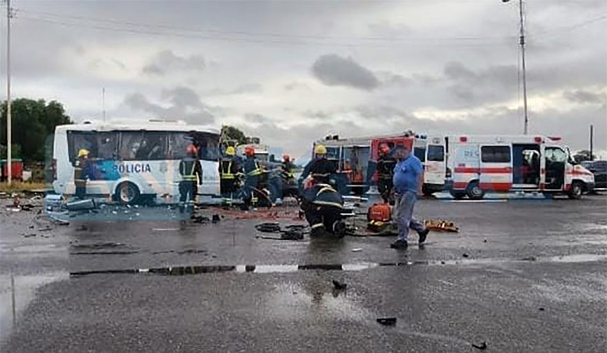 Por la violencia del impacto, fallecieron cuatro efectivos oriundos de Bahía Blanca. El personal policial se dirigía a hacer un servicio de cancha en el partido de fútbol entre los equipos Brown de Adrogue versus Atlético Rafaela, a disputarse hoy a las 16 horas en el Estadio Único de San Nicolás.