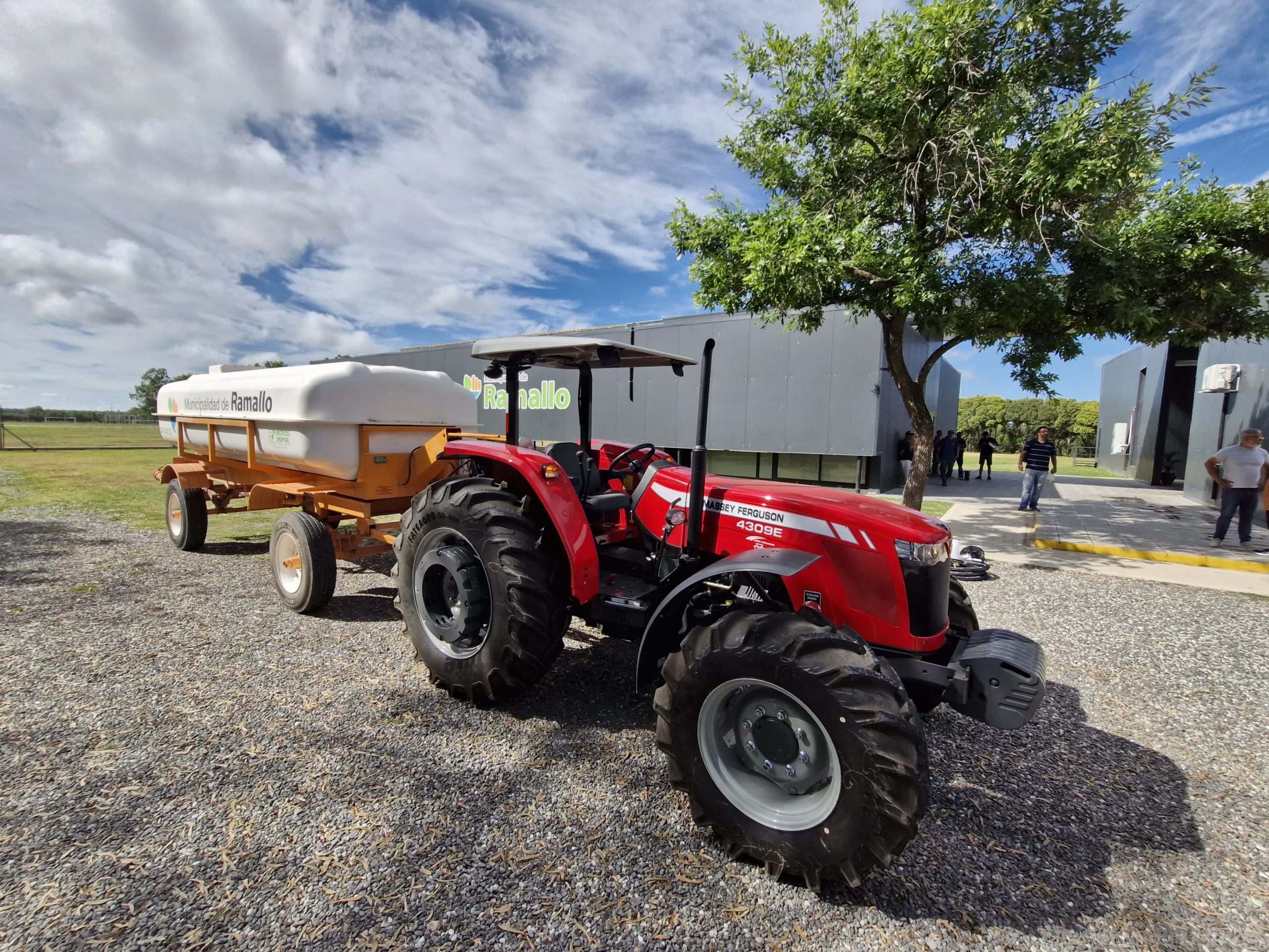 El intendente municipal de Ramallo, Mauro Poletti, junto al secretario de Obras y Servicios Públicos, Leandro Torri, presentó en el Centro Universitario un nuevo vehículo, se trata de un tractor regador 0 km. con capacidad de carga de 10.000 lts, que permitirá brindar más y mejores servicios en materia de riego para los vecinos.
