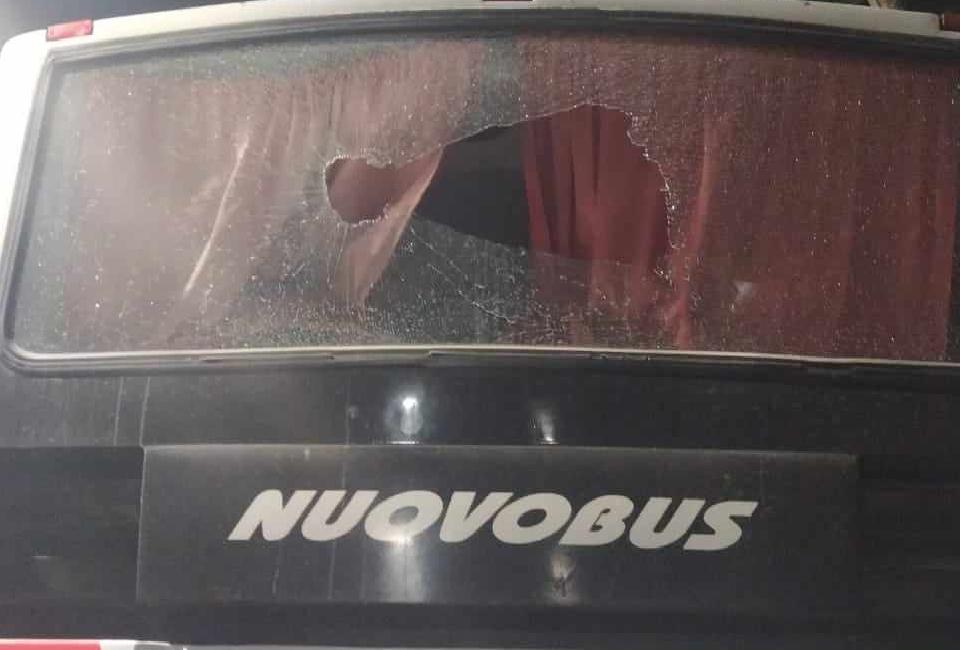 Finalizado el partido, que ganó Provincial 2 a 1, simpatizantes locales atacaron el micro de la delegación nicoleña, con rotura de varios vidrios.