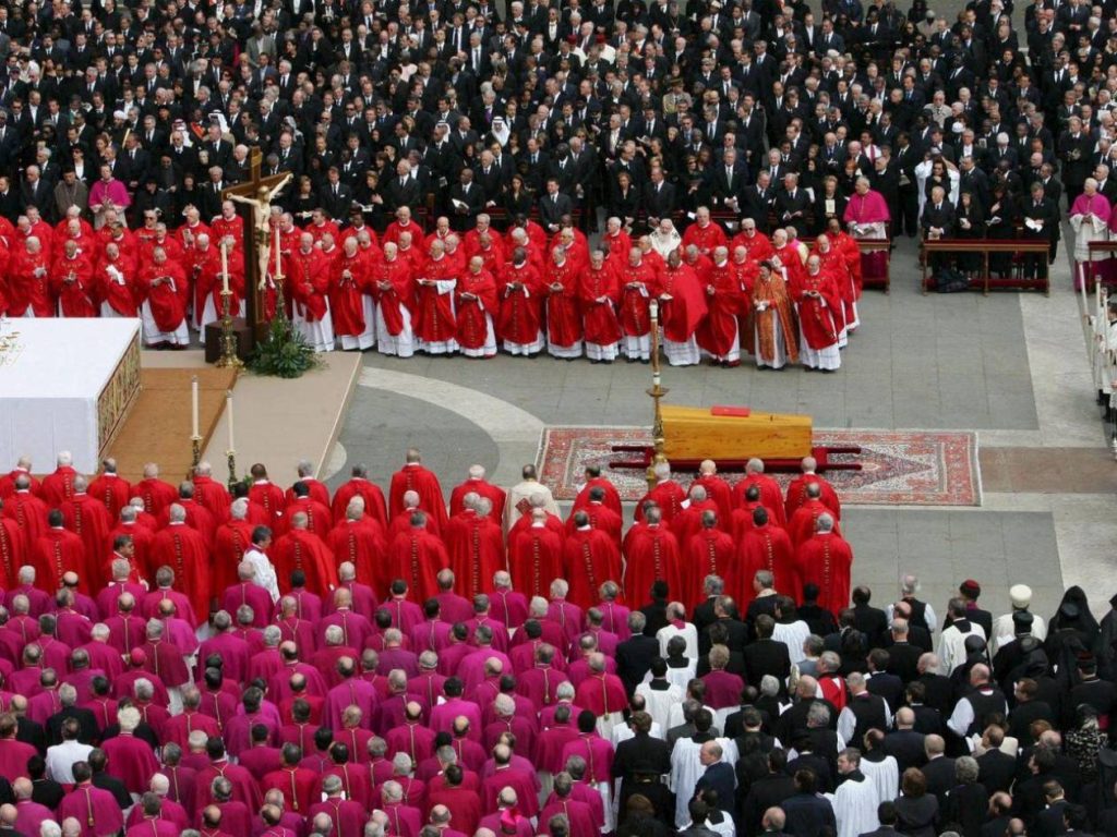 El cardenal Giovanni Battista ReEl cardenal Giovanni Battista Re bendice el ataúd. (Dylan Martinez/Reuters)