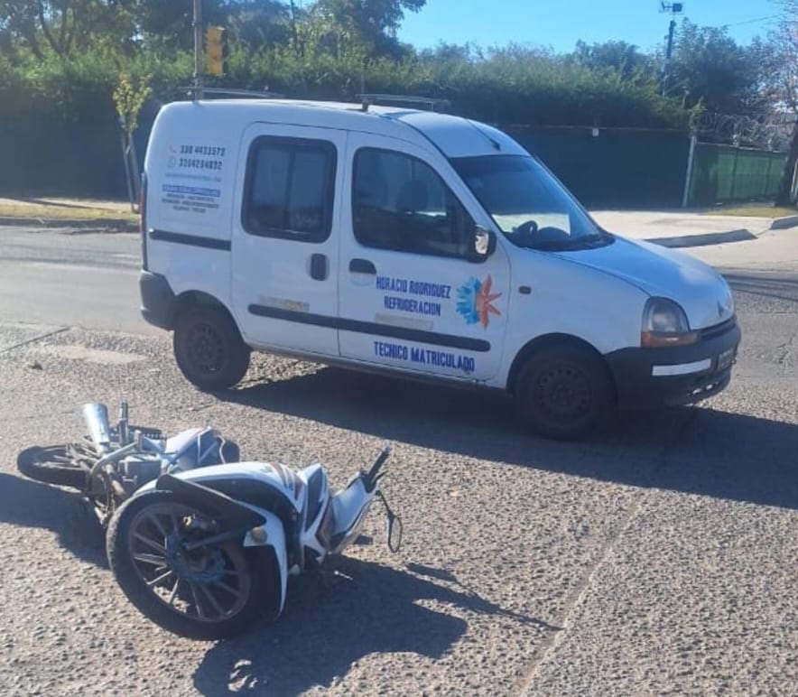 En el día de hoy, un motociclista de 51 años sufrió lesiones leves al chocar con una camioneta utilitaria Renault Kangoo en la intersección de avenida Illia y avenida Damaso Valdez, en zona norte. El vehículo mayor era conducido por un hombre de 45 años.