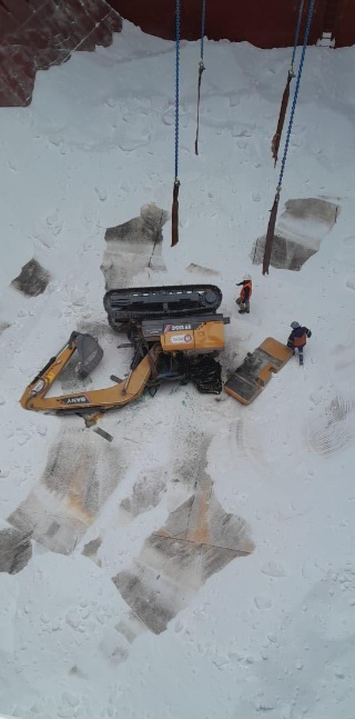Al parecer, mientras retiraban una retroexcavadora de la bodega del mencionado buque, la maquinaria de gran porte se desprendió de los equipos de izaje y se estrelló contra el fondo de la bodega, sufriendo importantes daños materiales. El objetivo era retirar la retroexcavadora para que ingrese una pala y de esa forma terminar de limpiar la bodega.