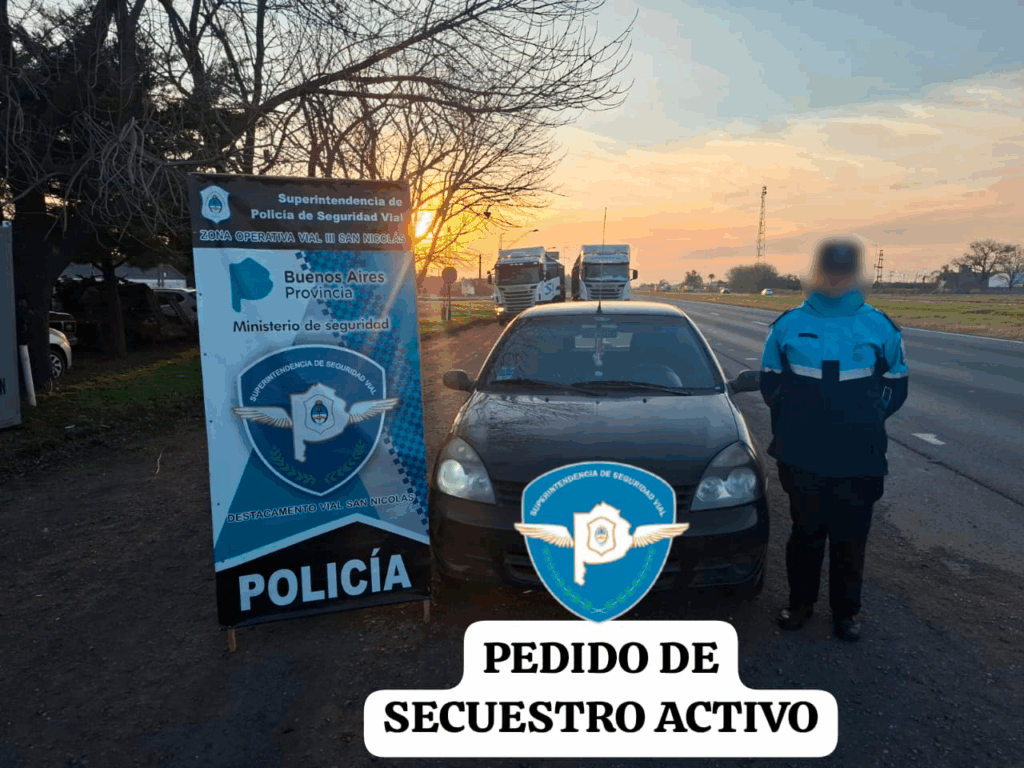 Al verificar la documentación del vehículo, se pudo constatar que tenía pedido de secuestro activo desde el 30 de abril de 2024, emitido por el Juzgado de Villa Gobernador Gálvez, Santa Fe. Los aprehendidos son un hombre de 56 años y una mujer de 34, ambos con domicilio en San Nicolás.  La UFI N°15 ordenó la aprehensión de ambos y el secuestro de un teléfono celular Motorola E32, dinero en efectivo por $22.000, $4.000 en billetes de $2.000 y un billete de 5 dólares.