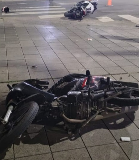 Por razones que se tratan de establecer, en la intersección de Avenida Moreno y Nación colisionaron una moto Kawasaki guiada por un hombre de 65 años, con otro ciclomotor Mondial Max 110 cc. conducida por un hombre de 40 años.