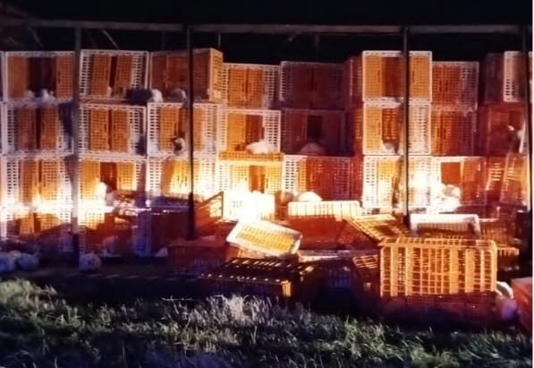 Un camión cargado con cajones de pollos vivos  volcó este miercoles por la noche en el kilómetro 210 de la Ruta Nacional 9 (Autopista), sentido ascendente, obstruyendo completamente la calzada. El conductor del vehículo, un hombre de 30 años oriundo de Capitán Sarmiento, resultó ileso.