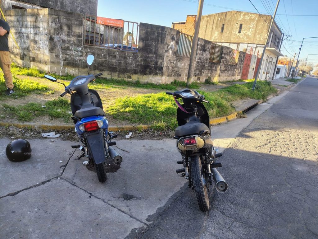 En esta oportunidad, por razones que se tratan de establecer, colisionaron dos motocicletas en la intersección de las calles Benítez y Las Heras.