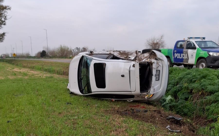 Por razones que se tratan de establecer, en el Kilómetro 18 de la mencionada ruta un joven conductor de 27 años perdió el control de su vehículo, un automóvil Ford Fiesta, tras pisar la banquina, volcando y quedando con el auto dado vuelta en la Plaza de General Rojo.
