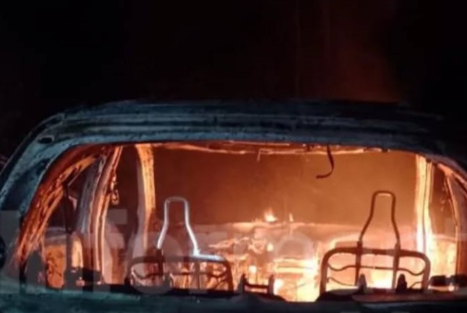 El vehículo que utilizaron los delincuentes para cometer el hecho, fue hallado prendido fuego (foto de abajo) en el km 220 de la ruta nacional 9. El hecho ocurrió el jueves en horas de la noche y la denuncia se radicó en sede de DDI San Nicolás e intervino la UFI N°12 a cargo de la Dra. Baños por “robo calificado”