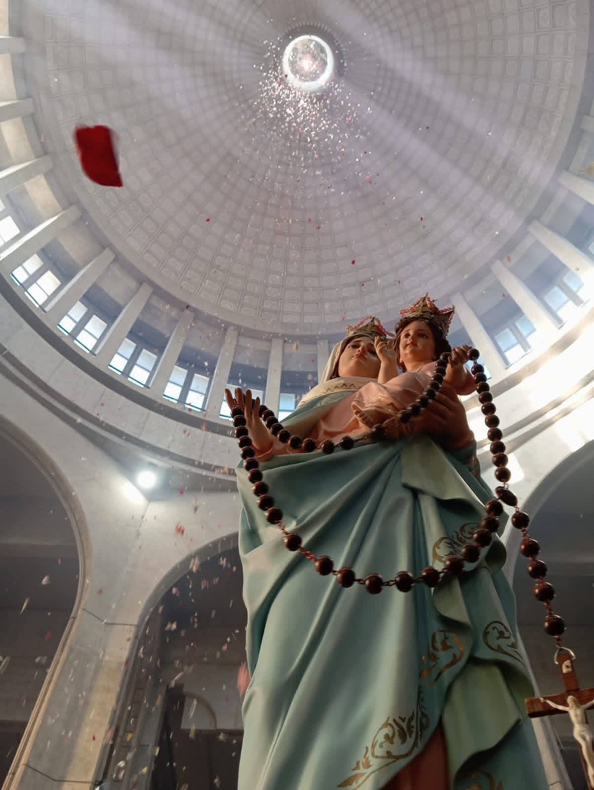 Durante toda la jornada, una marea de peregrinos acompañó la imagen de la Virgen. Como es costumbre, el punto alto fue el tradicional trayecto de la imagen por las calles cercanas al santuario, que finalizó en la explanada principal. Allí se vivió uno de los momentos más emblemáticos: el paso de la Virgen atravesó la usual lluvia de pétalos que cubre la explanada. Los fieles, reunidos en torno a la imagen, le dieron la despedida en su ingreso final al interior del templo.