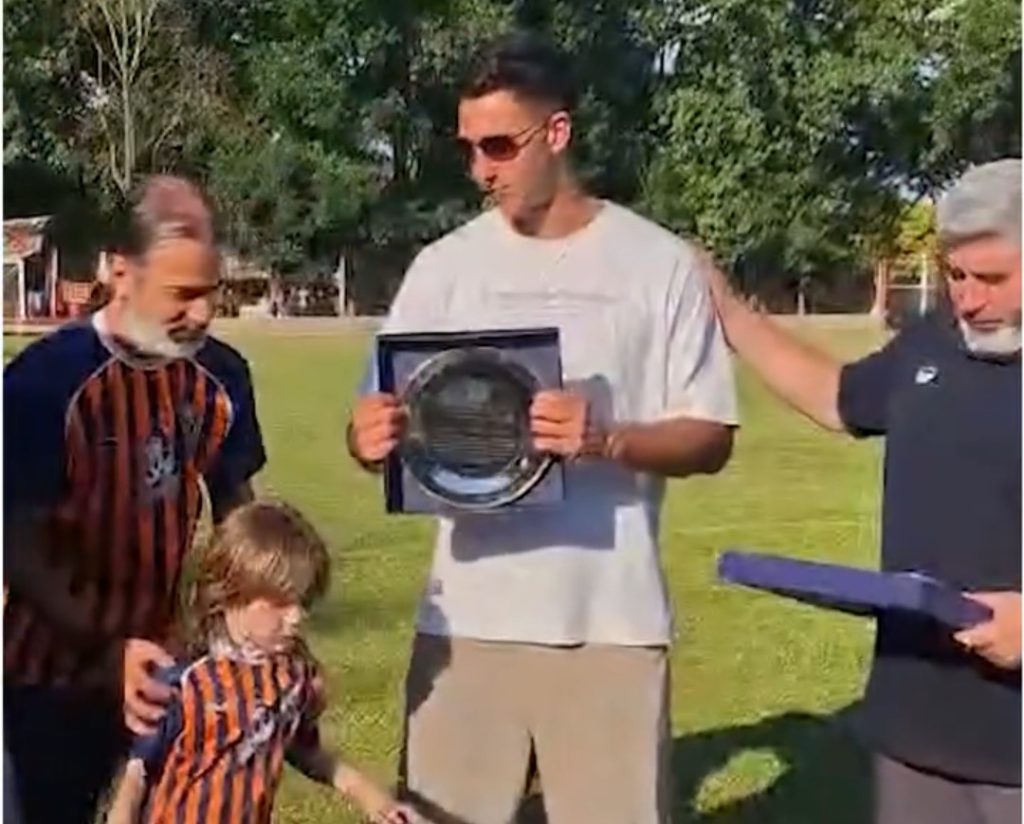 En medio de esta fiesta deportiva local, el presidente de la Liga Nicoleña de Futbol, Sandro García y Daniel Dignani, dirigente del futbol de Regatas, otorgaron dos reconocimientos de manera independiente, pero ambos importantes, reconociendo la labor que logró este nicoleño con paso en la Selección Argentina.