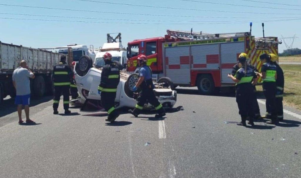 Al arribar al lugar, personal policial constató que, por razones que se tratan de establecer, un automóvil Toyota Etios, de color blanco, despistó mientras circulaba en sentido Buenos Aires–Rosario.