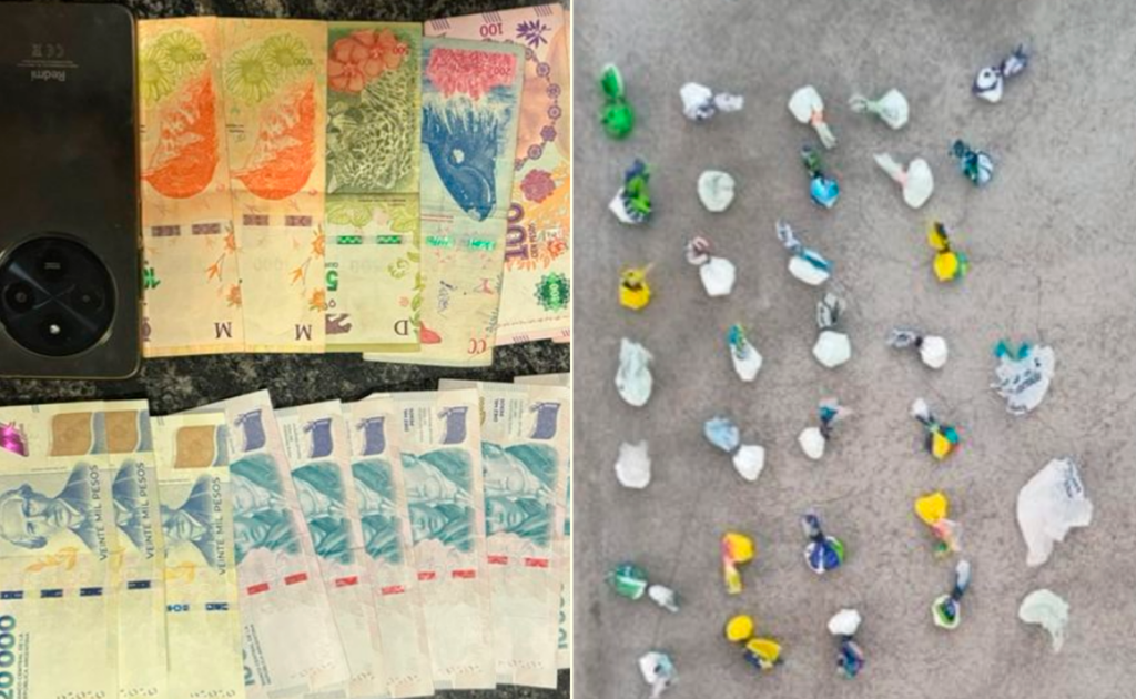 En el interior del vehículo, los efectivos incautaron 33 bolsitas de cocaína y la suma de 132.900 pesos. Tras el hallazgo, ambos ocupantes fueron aprehendidos en el lugar y trasladados a sede policial para la continuidad de las actuaciones.