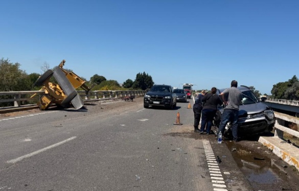 Por causas que aún son materia de investigación, un camión Ford Cargo perteneciente a la empresa Equipos Agroviales, conducido por un hombre de 38 años domiciliado en Córdoba, que transportaba maquinaria vial, sufrió el desprendimiento de uno de los equipos. La máquina cayó sobre un automóvil Citroën C3 que circulaba en el mismo sentido (mano ascendente).