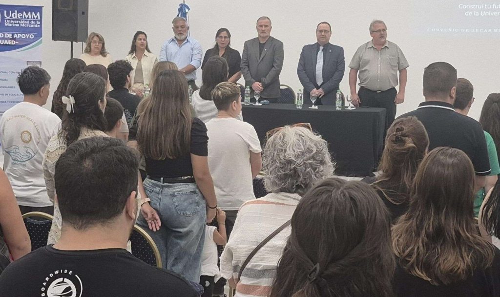 El acto contó con la presencia del intendente municipal Mauro Poletti, acompañado por integrantes de su gabinete; Gustavo Benfatto y Pablo Cueto, Secretario Académico de la Universidad y Director Actividades Académicas Mediadas por Tecnología de la Universidad de la Marina Mercante; la Inspectora Jefa de Enseñanza Distrito Ramallo, Lic. Alejandra Signo y unos ochenta estudiantes ramallenses que comenzarán carreras en esta institución de altos estudios.