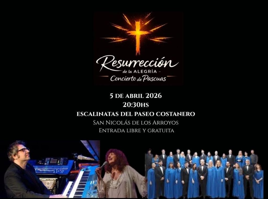 El próximo 5 de abril a las 20, las Escalinatas del Paseo Costanero de San Nicolás de los Arroyos serán el escenario de un evento cultural y espiritual de gran escala: el concierto “Resurrección de la Alegría”, una propuesta abierta y gratuita que reunirá a destacados artistas y convocará a toda la comunidad.