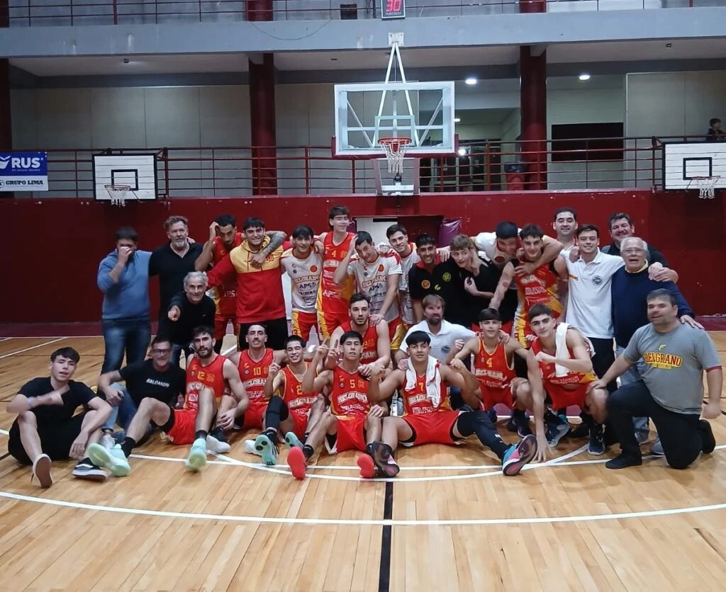 El equipo de Lucas Mazzoni se impuso sobre los somiseros, logró su octavo triunfo consecutivo y se mantiene como sólido líder de la Subzona B de la Conferencia Sudeste. Fue 82 a 73, 33 puntos de Grunale. El partido se disputó en Defensores de Villa Ramallo y a puertas cerradas.